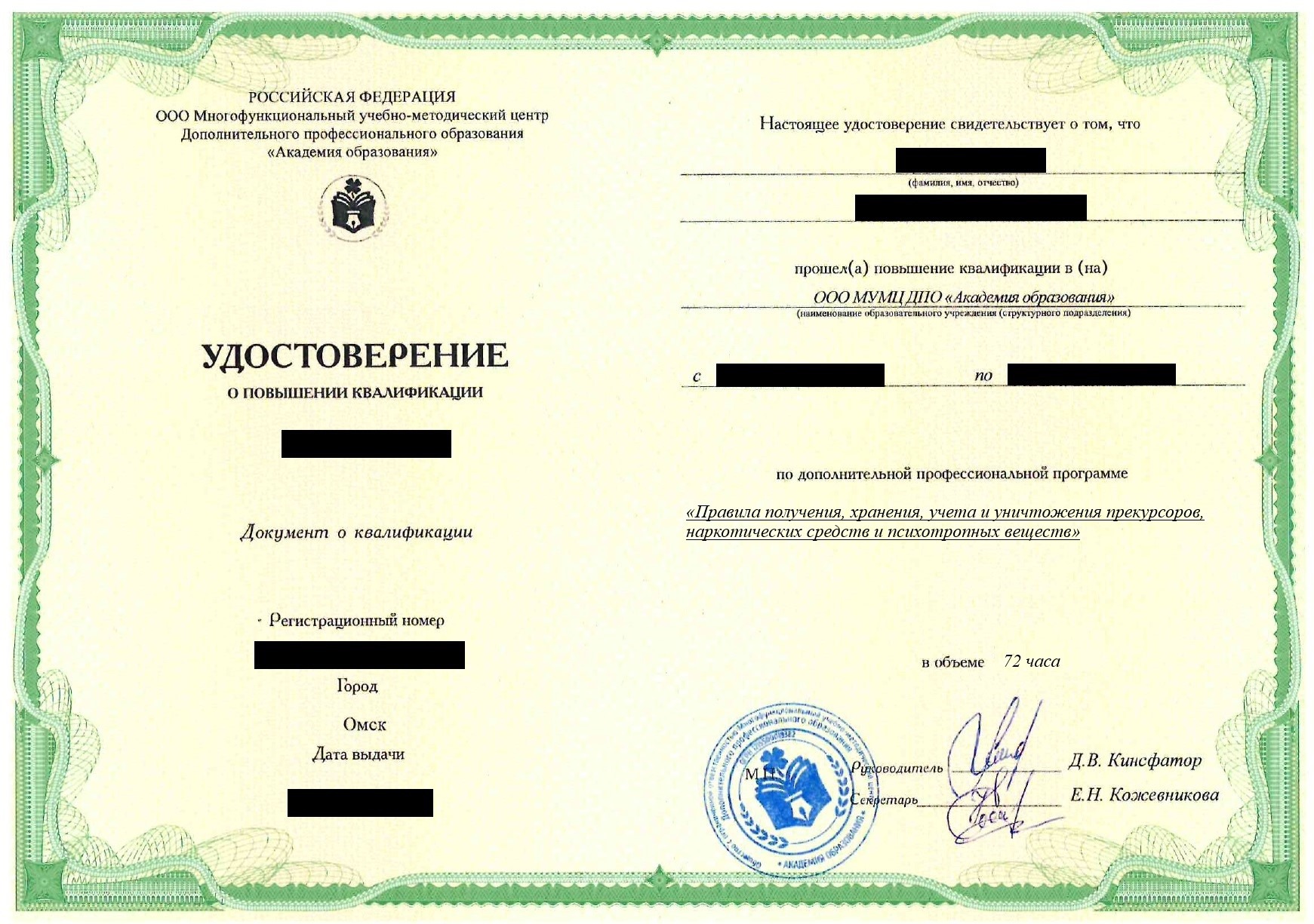 Повышение квалификации правила получения, хранения, учета и уничтожения прекурсоров, наркотических средств и психотропных веществ в Уфе