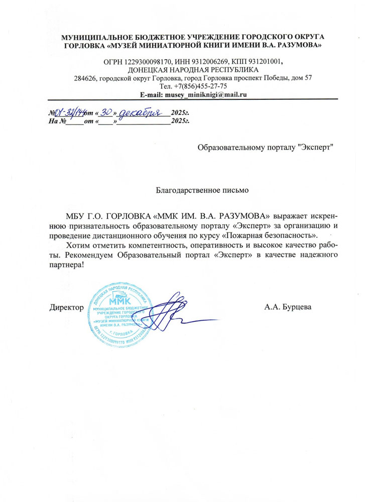 С помощью образовательного портала «Эксперт» Вы можете пройти курсы повышения квалификации, переподготовку по пожарной безопасности.